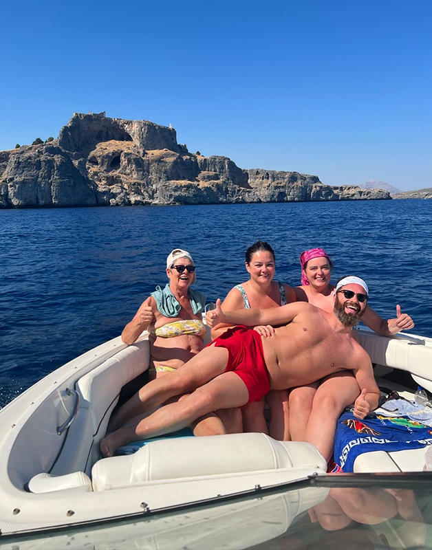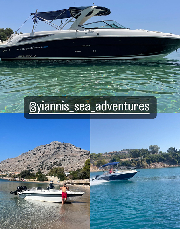 Discover Lindos & Pefkos coasts with our 10m Giant boat with captain. You will be impressed by its luxury features and its smooth ride!